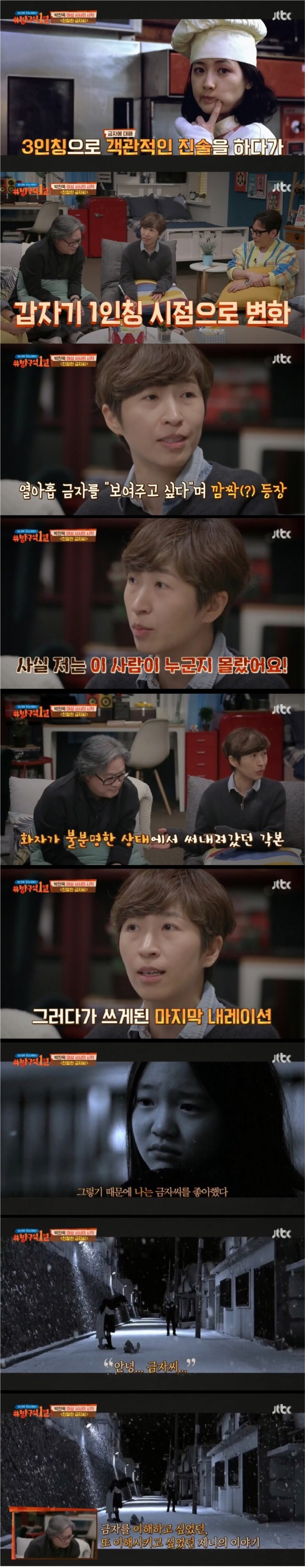 박찬욱 감독의 “친절한 금자씨”는 나이 있는 여성의 네레이션으로 진행이 되는데 시나리오를 쓸 때에는 화자를 구체적으로 정하지 않았다고 해요 그러다가 열아홉 금자에 대한 설명 그러니까 아마 영화에서는 [여러분에게 열아홉 살 금자를 보여주고 싶다. 누구나 돌아볼 만큼 예뻤지만 전혀 까다롭지는 않았던 소녀 이금자] 이 네레이션을 쓰고 작가님 스스로도 엄청 몰입이 되었다네요 그런데 쓰면서도 마지막까지 이 네레이션이 제니의 시점인줄은 몰랐다고 해요. 제니의 저 마지막 대사 [그래서 나는 금자씨를 좋아했다]에서 “금자씨”는 이금자가 제니에게 한국에선 엄마를 뭐라고 불러? 라고 하자 잠결에 말한 대사지요. 그래서 저 네레이션의 화자가 제니인걸 알게 된 순간, 영화 처음부터 끝까지 “금자씨”란 호칭은 “엄마”라는 단어로 다시 들리게 되어요. 5