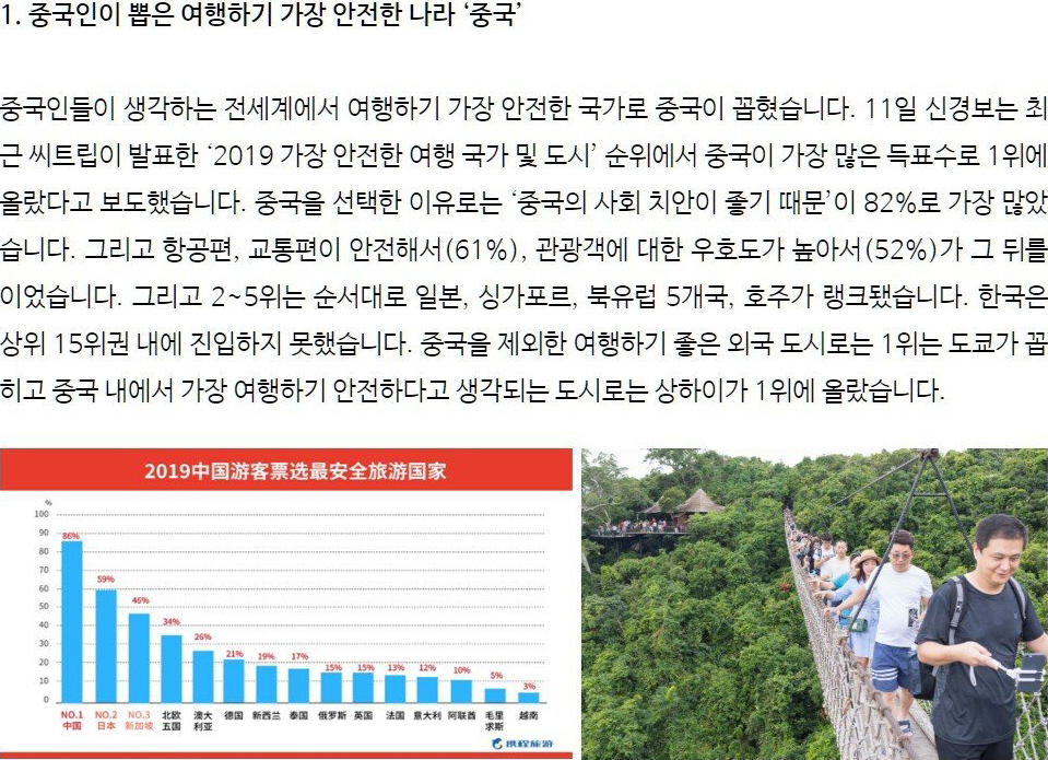 Subject   2019 여행하기 가장 안전한 나라 '중국'