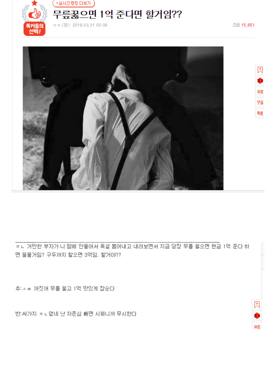 | Subject | 무릎 꿇으면 1억인데 가능? |
