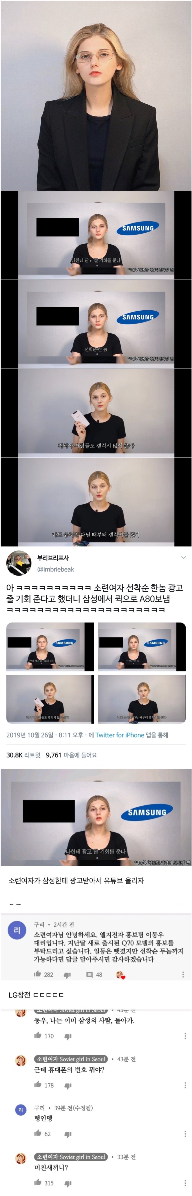 Subject   삼성 협찬 받은 유튜버 소련여자