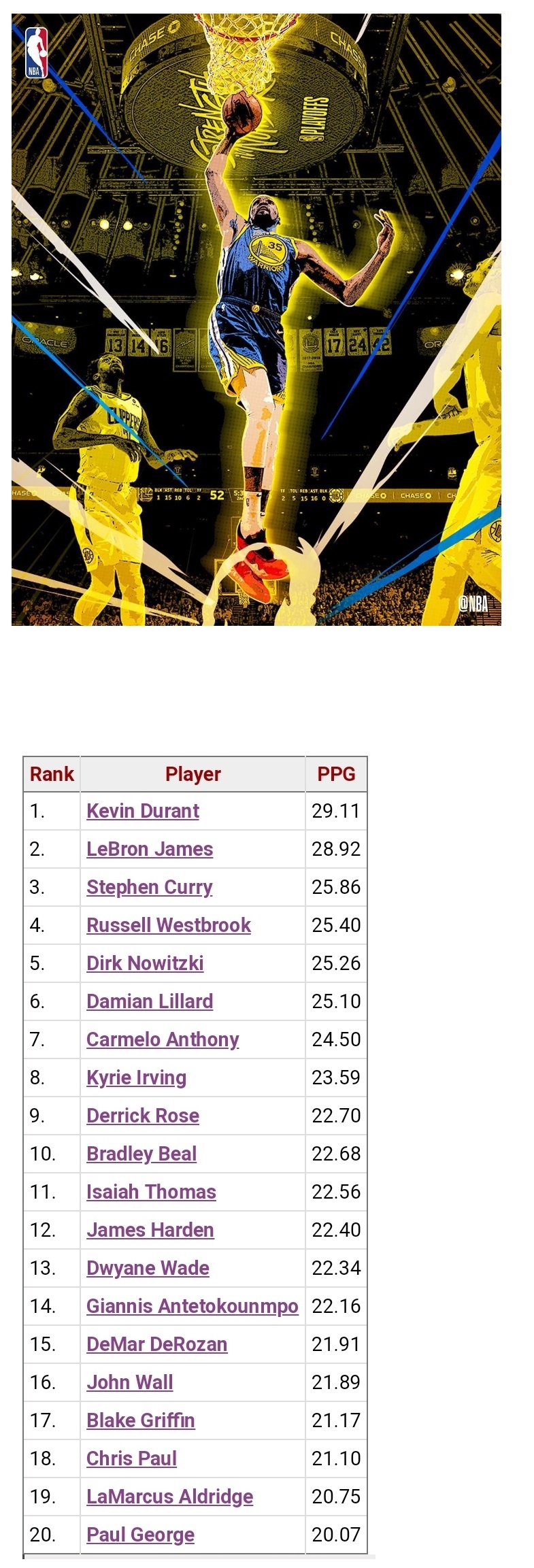 NBA 현역선수 커리어 플레이오프 평균득점 Top 20
