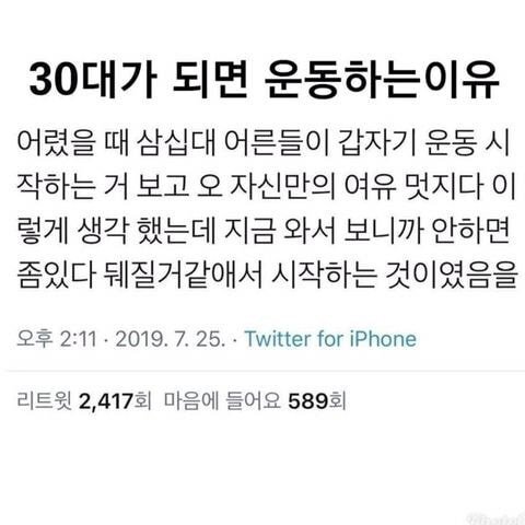 | Subject | 30대가 되면 운동하는 이유 |