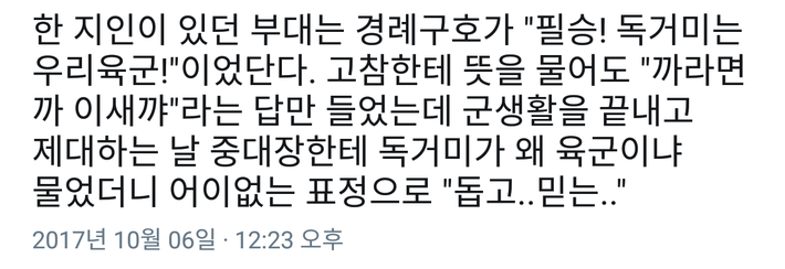 제가 있던 부대의 경례 구호는 헝호였읍니다.