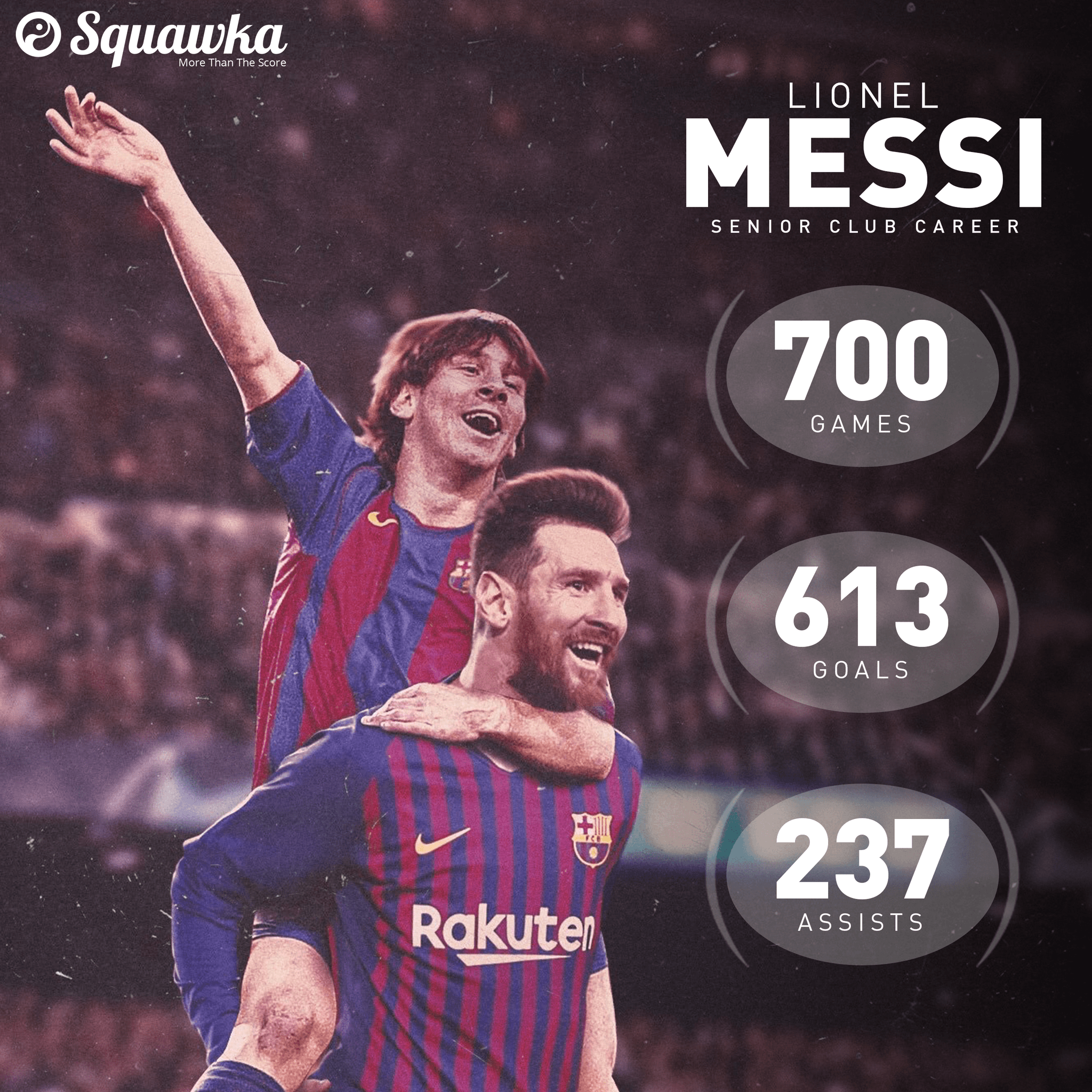 메시의 700경기 성적은 613골 237어시스트. 집계 방식의 차이가 있어 다른 곳은 250어시스트로 기록하기도 합니다.