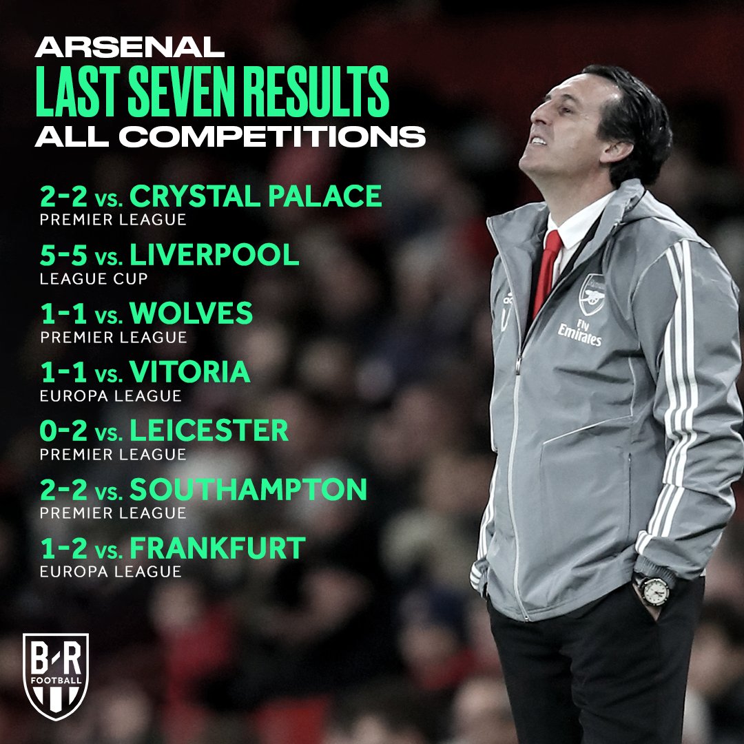 아스날의 7경기 연속 무승은 1992년 이후 최초라고 하네요.