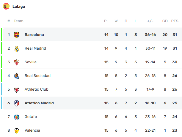 2019. 12. 01. Atletico Madrid 0 - 1 Barcelona (Messi 86') 나름 충격적인 정보 하나. 디에고 시메오네는 2011년 12월 아틀레티코 마드리드를 맡은 이후로 리가에서 바르셀로나를 상대로 이긴 적이 단 한 번도 없다. 라 리가에서 그의 대 바르셀로나 전적은 6무 10패. 0