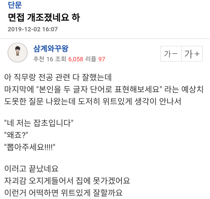 면접관 : 잡초는 뽑고 버리는데요..?? 4