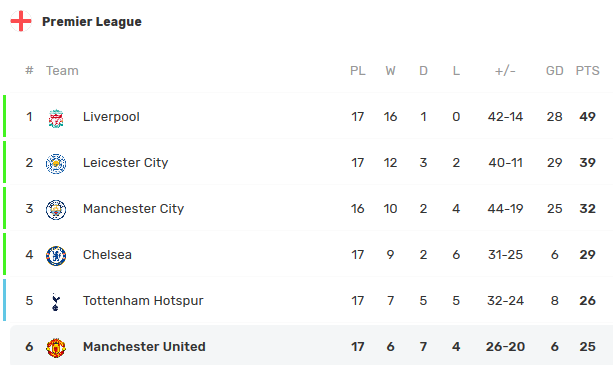 맨유가 7위로 떨어질 확률은 이제 곧 시작될 아스날 대 맨시티의 경기에서 아스날이 6점차 이상으로 승리하지 않는 것 정도인데... 그러니 볼 것도 없이 6위 복귀 확정.