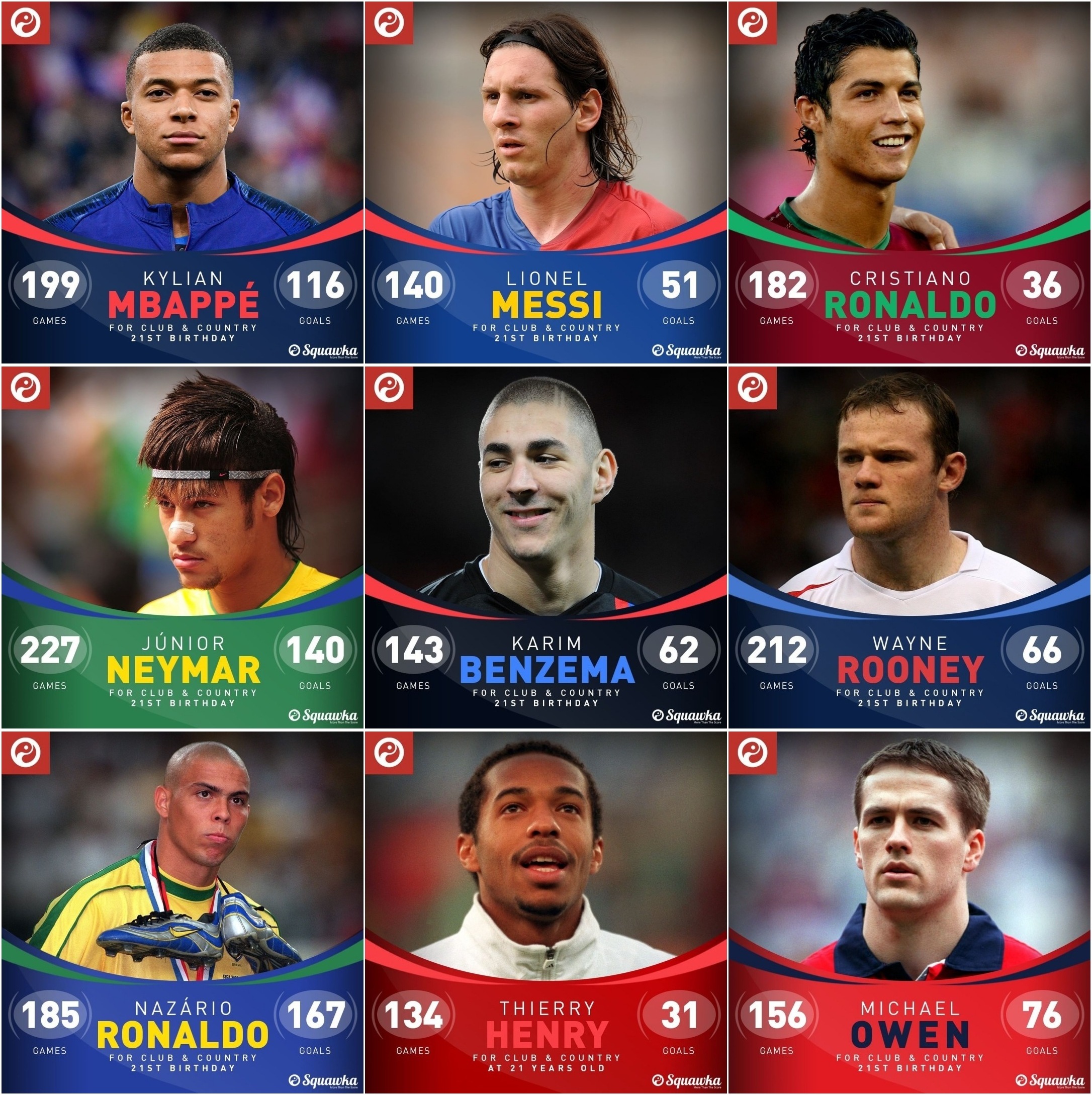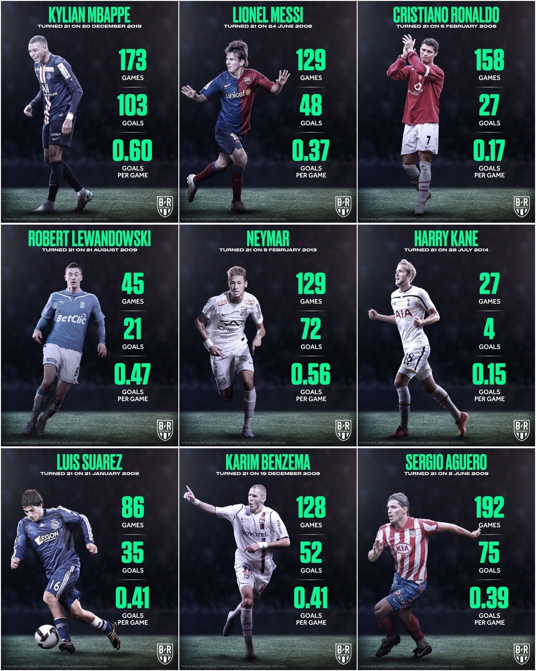 킬리안 음바페는 1998년 12월 20일생으로 며칠 전에 만 21세가 되었습니다. 그리고 위 사진들은 여러 레전드들이 만 21세 때 기록한 골 수를 나타내는 사진들. 첫 번째 BR 풋볼의 자료는 클럽 기록만, 두 번째 스쿼카의 자료는 클럽과 국대 기록을 모두 포함한 기록입니다. 자세히 보시기 전에 하나 고쳐야 할 점이 있다면 네이마르의 기록인데, 두 자료에서의 네이마르 기록 차이가 꽤 심한 것으로 표시가 되고 있습니다. 그 차이가 전부 국대 기록일리는 없고... 제가 좀 찾아보니 BR 풋볼 자료에서는 '캄페오나투 파울리스타'라고 불리는 상파울루 주 챔피언쉽 기록을 누락한 것으로 보입니다. 이 대회에서 네이마르는 2013년까지 75경기 53골을 넣었고, 이 기록의 상당 부분이 BR 풋볼 자료에 포함되었어야 했겠죠. 블리처리포트가 미국놈들이라 그런가 네이마르의 산투스 시절의 기록을 제대로 체크 못한 듯... 자세히 아시는 분들이 있다면 댓글로 지식을 뽐내주시길 부탁드려봅니다. 어쨌든 더 정확한 자료는 스쿼카 쪽에 가깝다는 점. 본론인 음바페 쪽으로 돌아와봅시다. 물론 축구에서는 골이 전부가 아닐 뿐더러, 저 나이대에서 각각의 선수들이 맡은 롤이 달랐고, 음바페는 현대 축구에서 사실상 4+1리그로 치부받는 리그 앙에서, 그것도 압도적인 전력을 과시하는 파리 생제르망에서 뛰었다는 점을 분명 고려해야 할 겁니다. 물론 그건 다른 레전드들에게도 비슷하게 적용되는 사실이겠지만. 하지만 음바페의 기량이 거품만은 아니라는 것은 챔피언스리그나 월드컵에서 이미 우리가 음바페의 퍼포먼스를 눈으로 확인함으로써 알고 있죠. 음바페의 기량 최고점이 어디까지 갈 수 있을지는 모르겠지만 최소한 커리어에 큰 사고가 없더라면 누적 기록만큼은 어마어마하게 쌓을 수 있을 것 같네요. 네이마르의 기록도 참 대단하긴 한데, 사실 이 자료의 진주인공은 아무리 봐도 호나우두인 듯. 호멘. 0