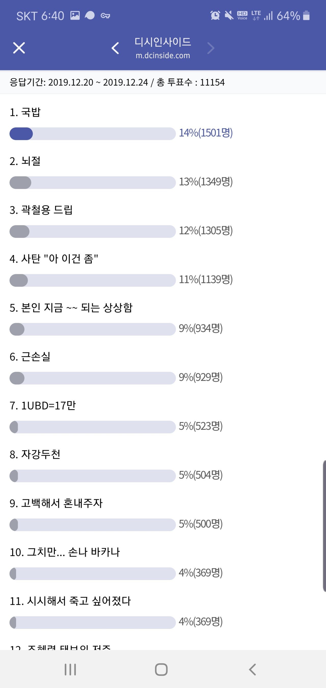 ------------------------- 나님 강림! 뇌절이란 단어 쓰임새 변화가 재미졌습니다. 그 변화 양상을 보다보니....2단 진화하는걸 보는 기분. 저 유행어들이 디씨발이란건 아니고. 전 만갤이나 다른 덕질갤들이 더 조회수가 높을줄 알았는데 핼갤이 상위권이던 ;; 디씨랑 커뮤니티 눈팅하다보면 은근 핼겔 개념글이나 밈이 이리저리 빠르게 퍼지더라구요. 아래는 뇌절 나무위키 [2018년 들어 인터넷 상에서는 이른바 '절 드립' 의 마지막을 장식하는 인터넷 유행어 밈이 되었다. 한마디로 말해 "뇌와 손절했다는 의미로 최초에는 대부분의 인터넷 드립의 발원지인 디씨의 갤러리 중 하나인 만화 갤러리. 만갤에서 카카시 거품설, 쓰레기 닌자 카카시 밈이 널리 퍼지면서 그 주력기인 뇌절[42] 또한 비웃는 글들이 계속해서 올라왔고 끝도 없이 올라와 질린 디씨인들이 그만하라면서 '1절, 2절도 모잘라 카카시 뇌절까지 하네'라는 내용의 글이 힛갤에 올라오며 최초 등장하였다. 리그 오브 레전드 솔랭이나 프로경기 관전 등에서 종종 보이며, ' 1절, 2절, 3절, 명절에 큰절, 카카시 뇌절까지 하네 ㅋㅋ' 라는 식으로 전반적으로 낄끼빠빠에 적당히 치고빠지는걸 모르는 이들에게 쓰이는 유행어다. 이미 한참 전부터 '1절만 해라'라는 말은 비슷한 의미로 쓰였다. 똑같은 말도 적당히 하라는 뜻. 여기서 '뇌절' 부분만 뚝 떼어와서 '이득을 봤음에도' 빠지지 않고 무리한 플레이를 하다가 이득을 더 못보게 되거나 도리어 손해를 보게 되는 상황', 흔히 말하는 '오버 플레이'를 지칭하는 말로 많이 쓰이고 있다. 특히 리그 오브 레전드 갤러리에서 돌진기를 이상하게 써서 잘릴 때 뇌절드립이 흥하는 편. 뇌절 드립을 하도 쓰다보니 뇌절 드립의 어원을 몰랐던 사람들은, 마치 '뇌(腦)'에 있는 회로가 '끊어졌다(切)' 는 뜻으로 해석하여 '뇌를 거치지 않고 나온 지나친 행동'으로 재해석하기도 하였으며, 어감 때문인지 급기야 '뇌정지' 와 같은 뜻으로 '뇌절이 왔다' 라고 쓰이고 있는 판국이다. 팀게임인 오버워치에서도 주로 등장한다. 마침 이 치도리란 기술도 '적에게 돌진하여 꼬라박는' 기술이기 때문에 어찌저찌 끼워맞추면 기술과의 유사점도 찾아볼수는 있을 듯. 그래서, 사실 뇌절드립의 원래 뉘앙스였고 실생활에서도 많이 쓰이던 1절만 해라의 뉘앙스였던 뇌절이 적당히 해라,그만 해의 뜻을 넘어, 너 미쳤구나라는 뜻까지 합친 복합적인 유행어로 합성 진화한 것이다.] 0