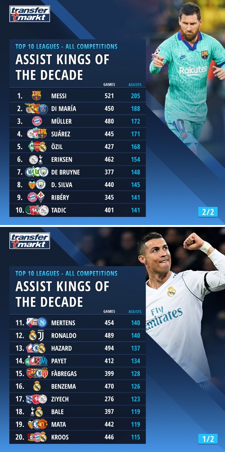 | Subject | [해축] 2010년대 전체 어시스트 1위는 메시 |