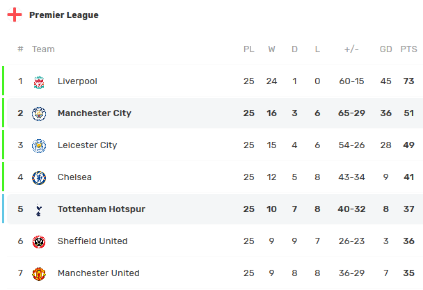 2020. 02. 02. Tottenham 2 (Son 71') - 0 Man City 수비수 발에 굴절이 되어 들어가긴했지만 깔끔한 볼터치와 좋은 슛팅이었습니다. 토트넘은 맨시티를 잡아내며 리그 5위로 올라섰습니다. 0