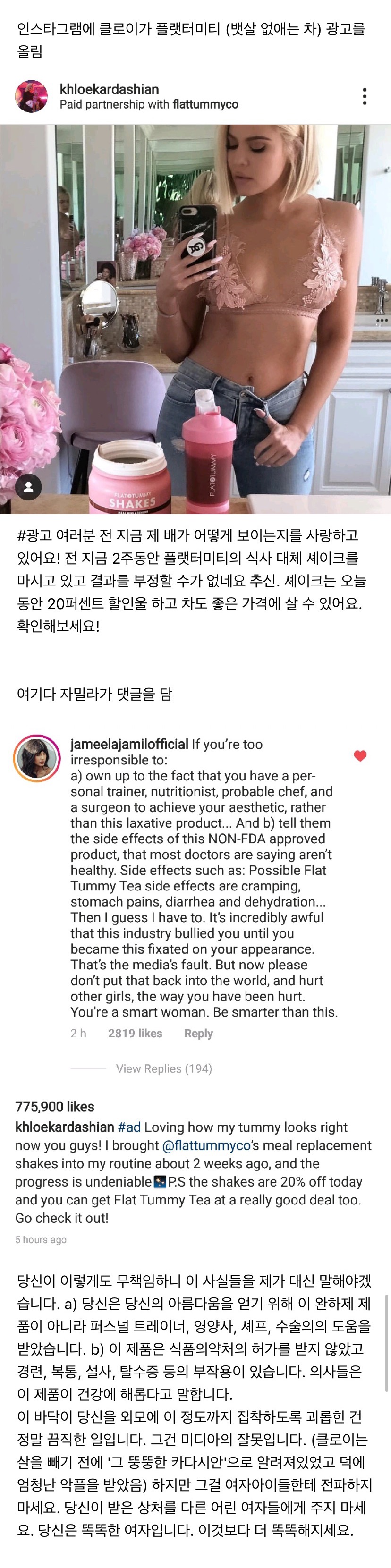 | Subject | 카다시안 인스타그램에 댓글 단 자밀라 자밀 |
