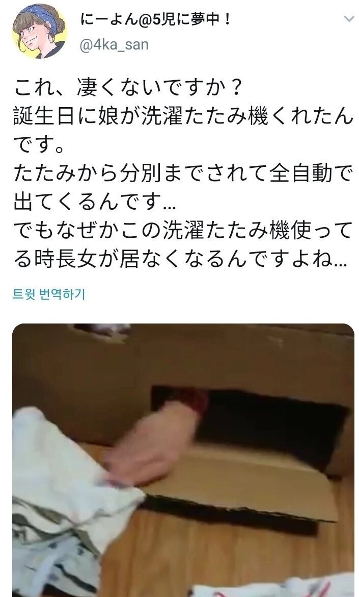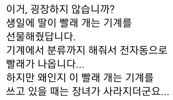 | Subject | 딸이 빨래 개는 기계를 선물해줬다 |