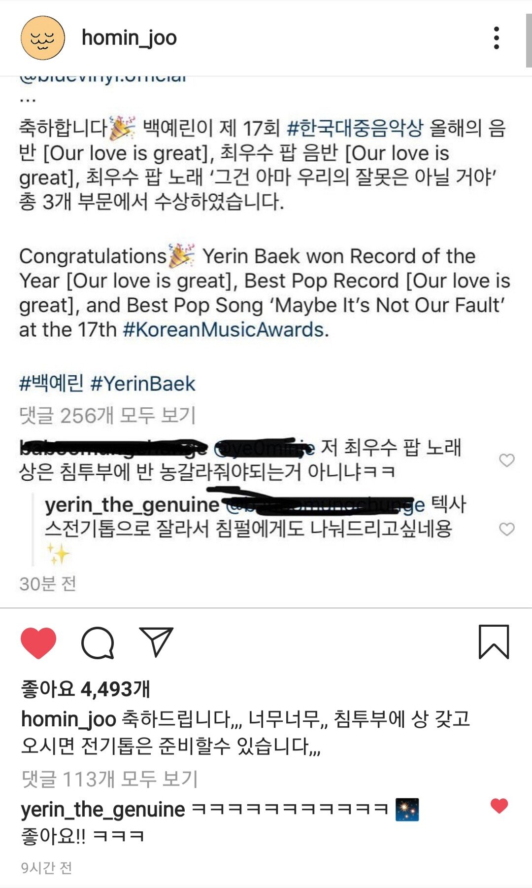 | Subject | 침펄 덕분에 상 받은 백예린 |
