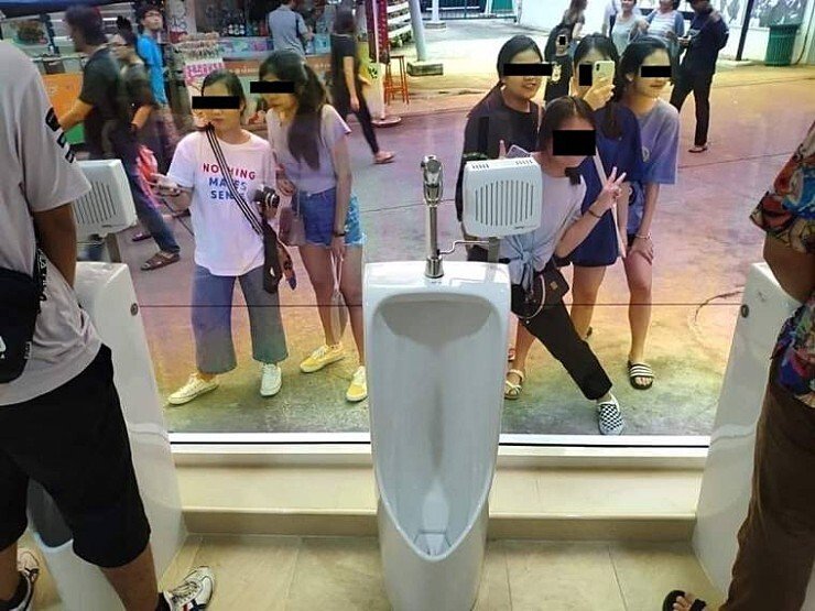 밖에서 보면 거울이라고 하네요. 저는 저기서 아무리 급해도 소변을 못 볼거 같군요.. 0