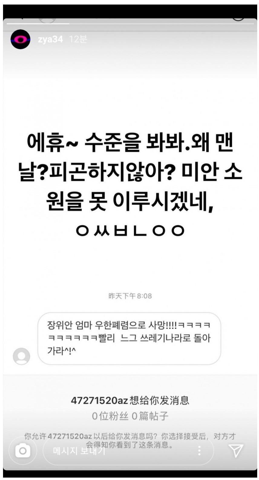 | Subject | 중국인 장위안이 받은 인스타 DM |