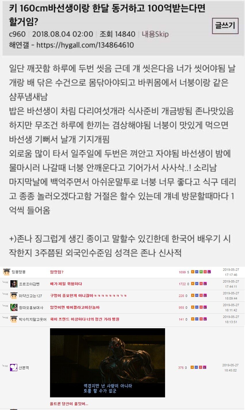 | Subject | 키 160센티 바퀴벌레랑 한달 동거하면 100억 |