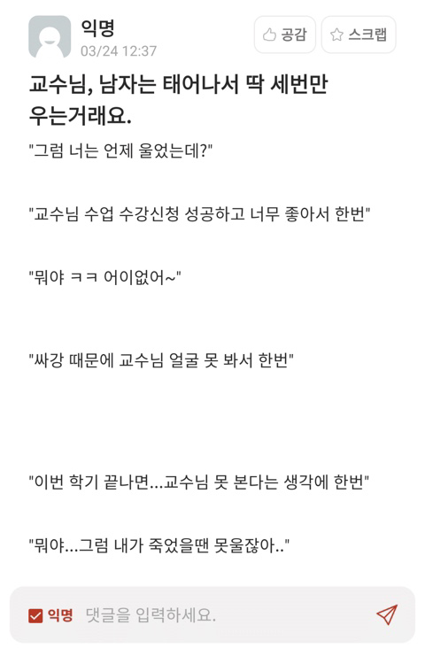| Subject | 요즘 흔한 대학생 게시판의 드립 |