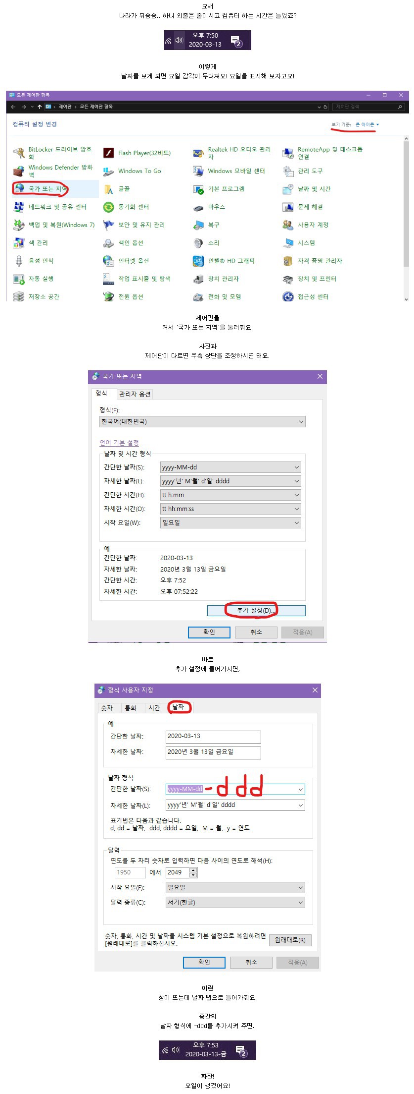 강추꿀팁] 작업표시줄에 '요일' 표시하는 방법.jpg 3