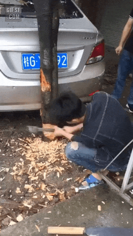 | Subject | 차 빼려고 나무 자르는 운전자 |