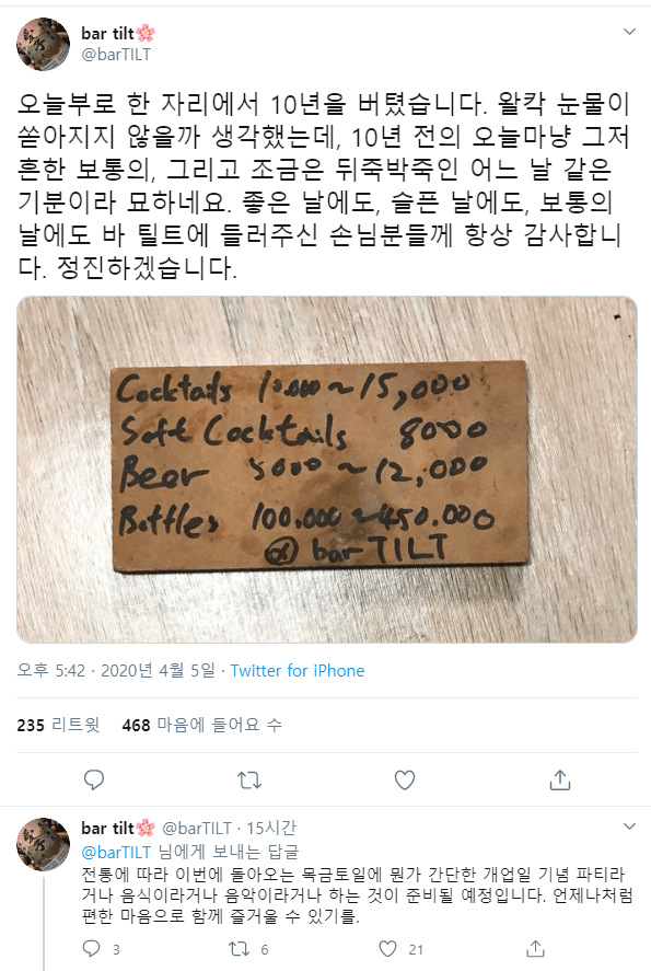 | Subject | 한자리에서 10년 버틴 바 사장님 감회 |