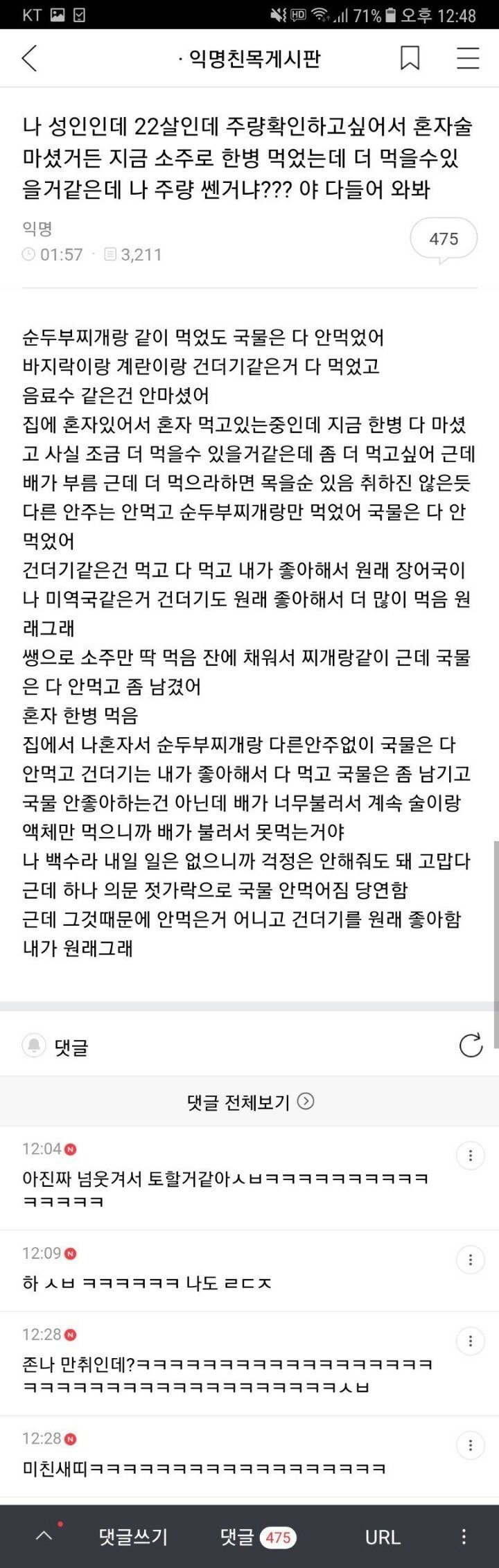 Subject   나 성인인데 22살인데 주량확인하고싶어서 혼자 술마셨거든