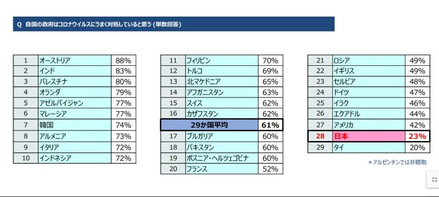 | Subject | 일본에서 조사한 주요 국가별 코로나 대응 지지도 |