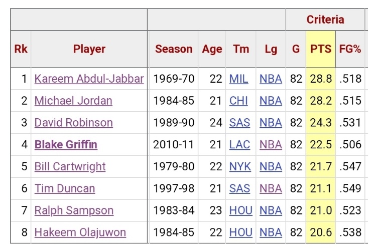 NBA 루키시즌 전경기 출장, 평균 20+득점, 필드골 50+% 동시달성 선수.jpg 0