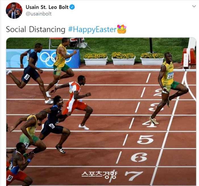 우사인 볼트가 사회적 거리두기에 참여하는 모습이다. 0