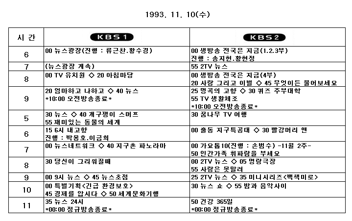 Subject   요즘 친구들은 모르는 옛날 티비 편성표