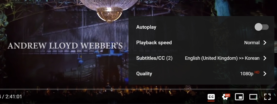 https://youtu.be/nINQjT7Zr9w 영국은 24시간, 다른 나라들은 48시간 공개고, 공개된 지 13시간 지났습니다. 코로나 사태로 유튜브 기본 화질 설정이 720p로 제한되곤 합니다. 1080p로 보실 분은 수동 설정하시고, 영어 자막을 켜서 볼 수 있고, 한글 자막은 자동 번역(Auto-translate)을 먼저 선택해서 선택할 수는 있습니다. 2