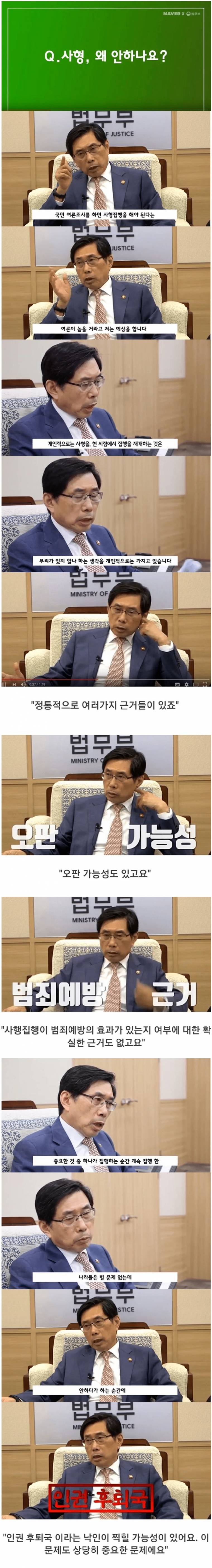 | Subject | 법무부장관이 말하는 사형집행 안하는이유 |