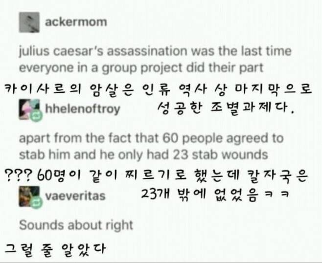 | Subject | 인류 역사상 마지막으로 성공한 조별과제 |