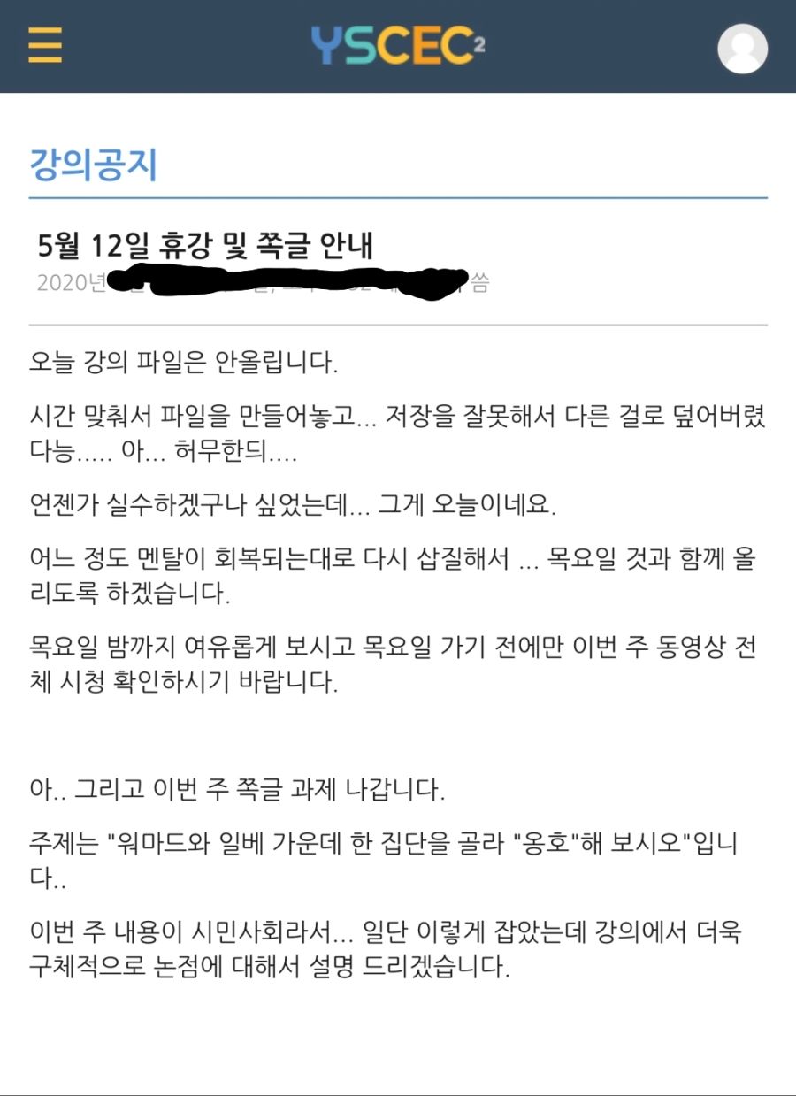| Subject | 가슴이 웅장해지는 연대 과제 |