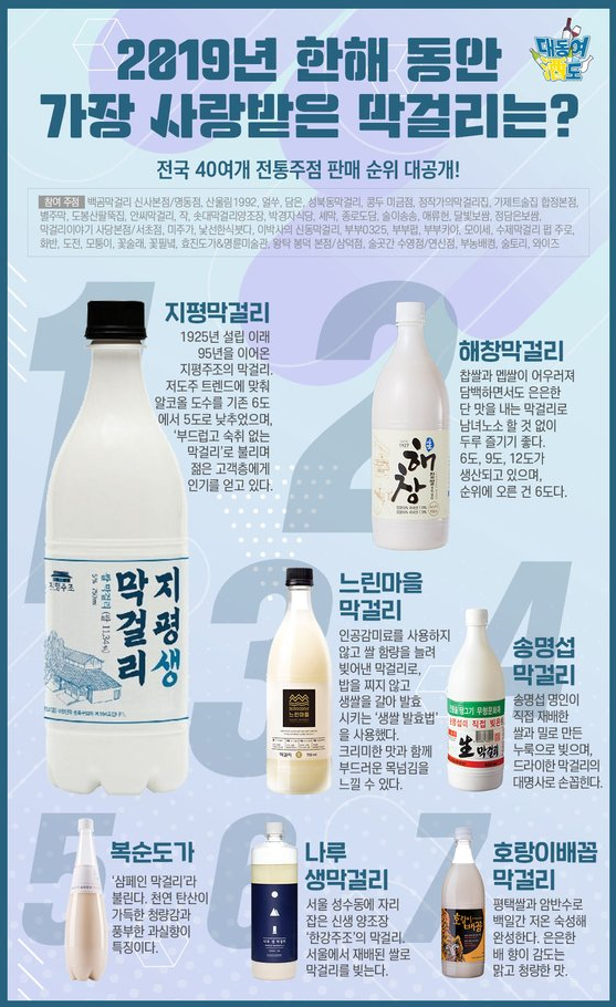 45023 2019 막걸리 판매 순위 13 구밀복검 20/05/16 5075 0
