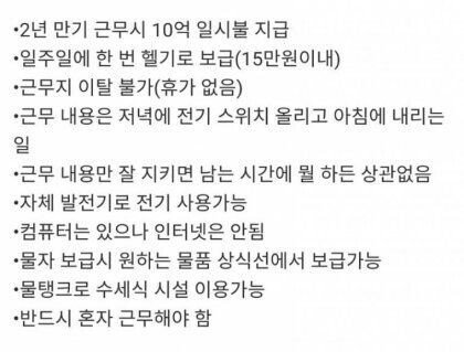 Subject   2년 만기근무시 10억 제공