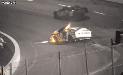 아들의 경기를 관람하던 중 아들이 사고가 나 차량이 불에 휩싸이자 관중석에 있던 아버지가 달려들어 아들을 구하는 장면입니다.
