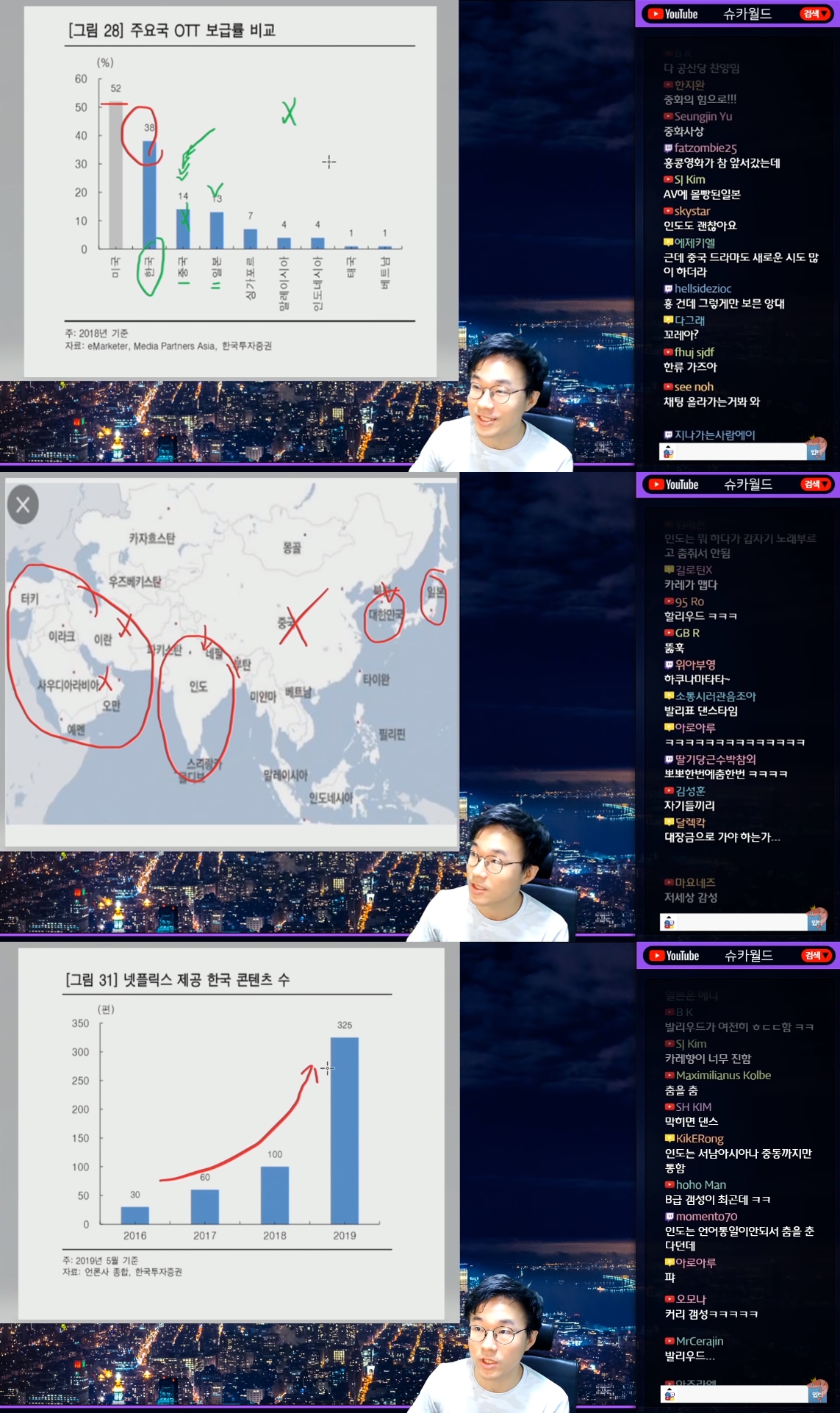 디즈니, 애플 참전 선언! 과열되는 컨텐츠 전쟁(06:30~) https://youtu.be/0fZfE4NNmZQ 넷플릭스가 세계 OTT 시장에 투자하려고 하는데, 아시아-태평양 지역이 미개척지대이다. 그렇다면 아시아에서 넷플릭스가 투자할 만한 데가 어디가 있을까? 중동 - 종교 때문에 작품 제작에 제약이 있음 중국 - 중국 공산당의 사상 때문에 제약이 있음 0