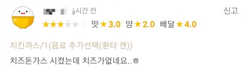 | Subject | 치즈 돈까스에 치즈가 없네요 |