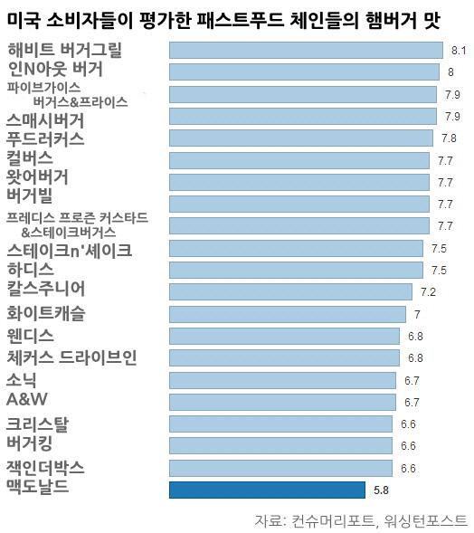 | Subject | 미국인이 평가한 패스트푸드 체인점 햄버거 맛 |