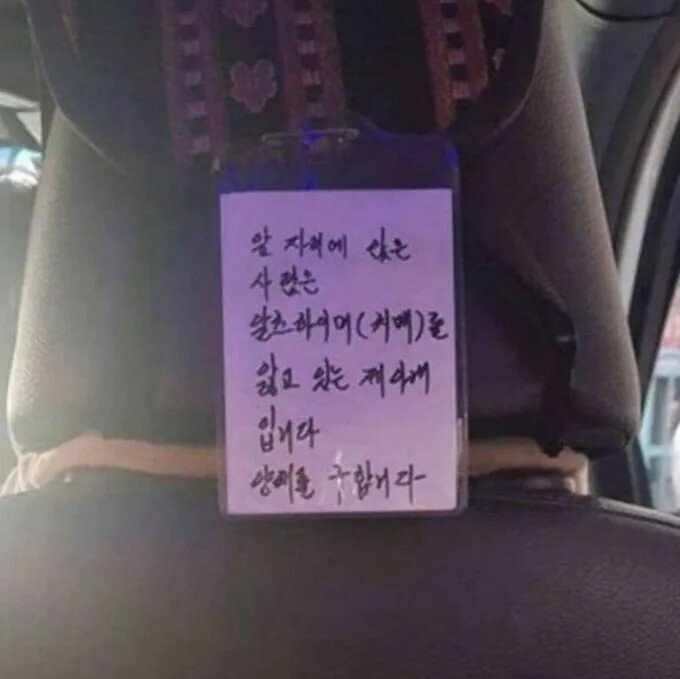 | Subject | 어느 택시의 뒷자리 문구 |