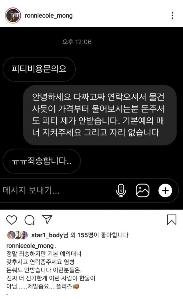 초반에 인사도 안하고 너무 예의없다 VS 트레이너 뇌절이다 저게 기분 나쁠 일인가 싶긴 한데 기분 나쁘다 하더라도 dm으로 끝내는게 아니라 피드에 또 올리고 염병 드립까지 하면 트레이너가 뇌절이 아닌가 싶습니다.. 0