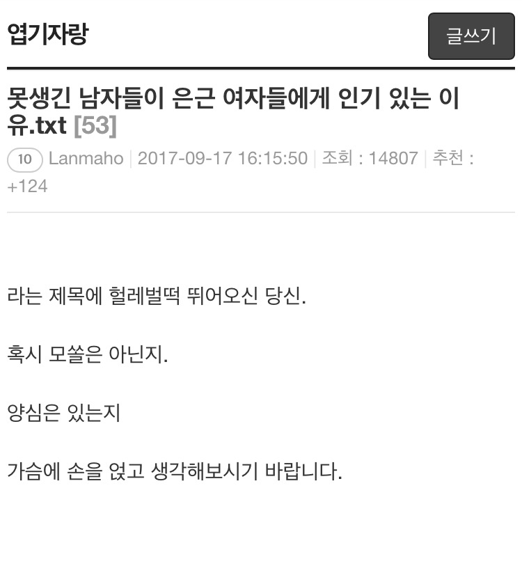 | Subject | 못 생긴남자들이 은근 여자한테 인기있는 이유 |
