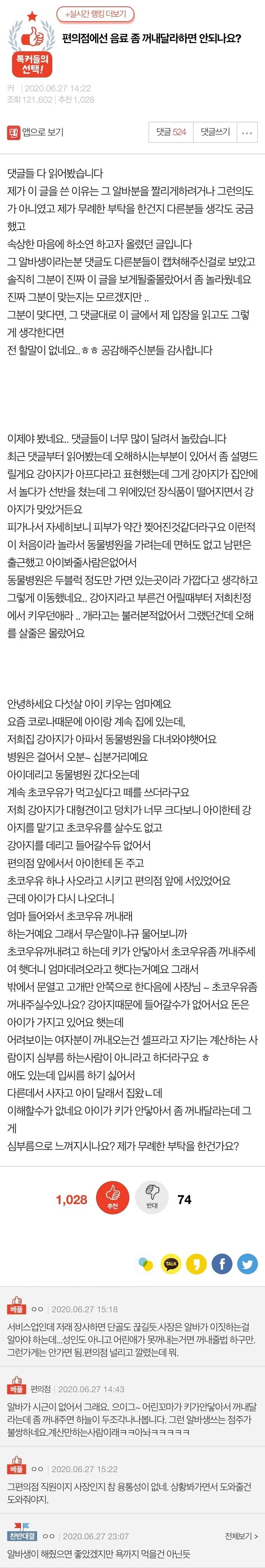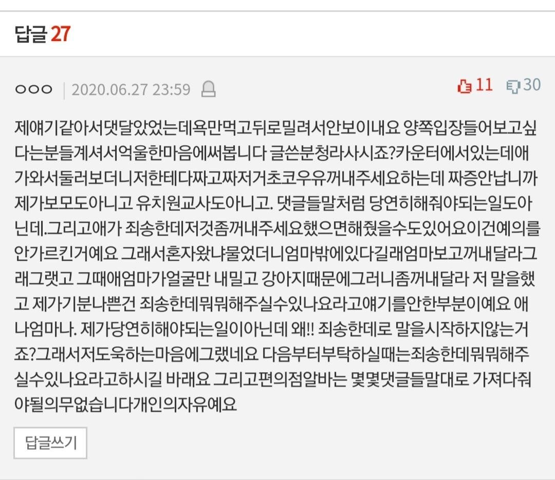 알바생 댓글까지 보니 더 이상하네요. 저 정도 요구는 충분히 들어줄 수 있다고 보는데... 0