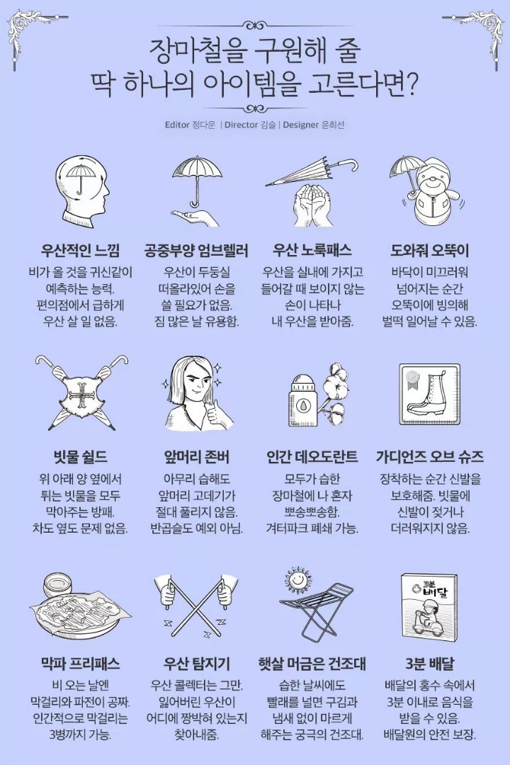 | Subject | 장마철 나를 구원해 줄 단 하나의 아이템을 고르면? |