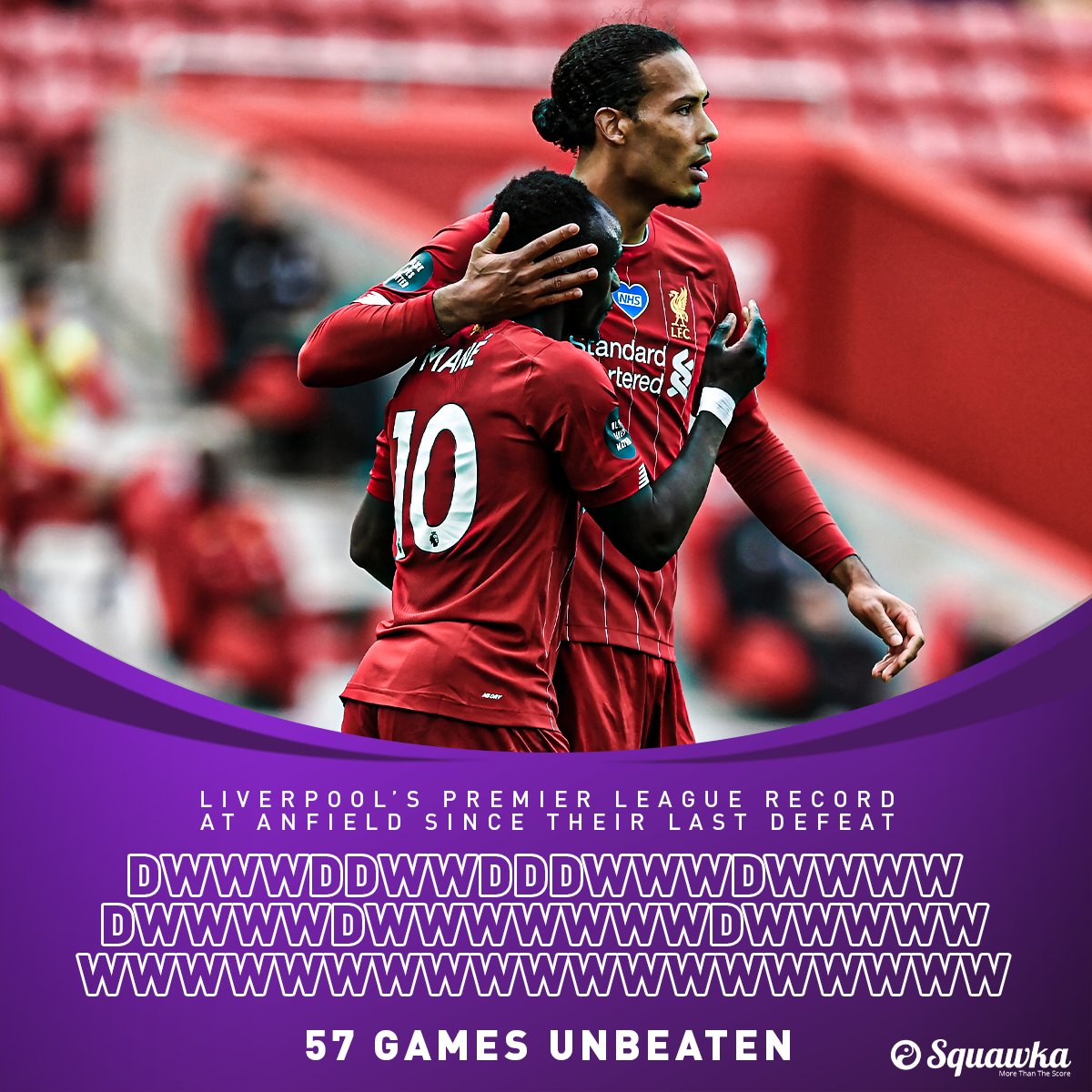 리버풀은 프리미어리그 안필드 57경기 연속 무패를 기록 중입니다.