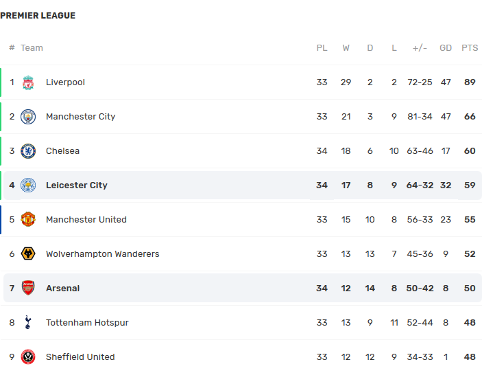 아스날은 5위 안으로 들어가서 혹시나 챔피언스리그를? 이라고 생각하던 시나리오가 사실상 깨진 것 같네요. 어디까지나 전승을 한다면...의 가정이었는데 승리도 못 챙겼고, 레스터 시티에게도 승점을 안겨줬습니다. 리그 재개 이후 첼시는 5승 1패, 멘유는 4승 1무를 기록하면서 급격한 상승세를 타고 있는지라 니가가라 챔스 시나리오를 쓰진 않을 것이고, 레스터 시티는 이제 남은 경기에서 1승만 해도 잔여경기 전승을 한 아스날을 제칠 수 있게 됩니다. 사실상 챔피언스리그에 도전할 수 있는 마지막 도전 티켓은 울버햄튼에게만 주어질 듯.