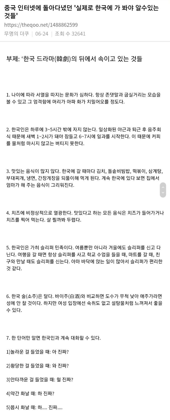 중국 인터넷에 돌아다녔던 '실제로 한국에 가 봐야 알 수 있는것들' 0