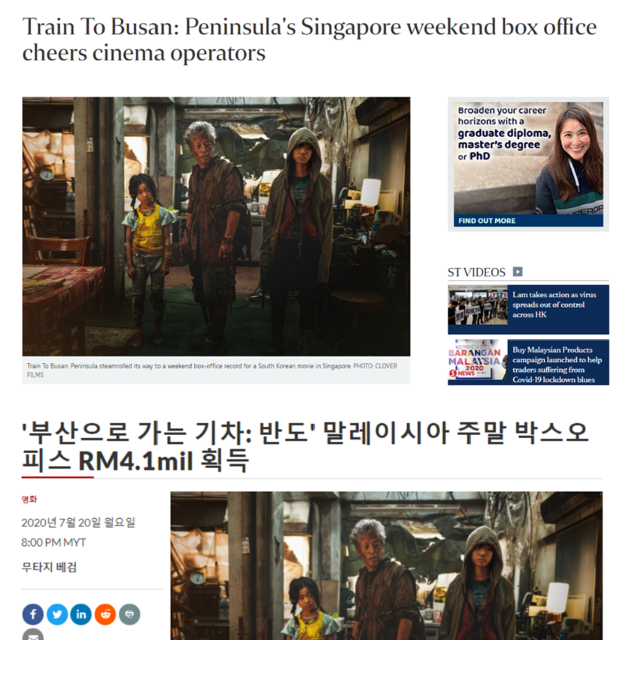 국내에서만 반응이 뜨거운줄 알았는데 해외에서 더 열광적이네요! 반도 개봉하고 외국 극장에서도 다시 열기도 찾고 박스오피스 1위도 했다는데 진짜 대단... 심지어 싱가포르는 한국영화 역대 주말 최고 스코어라던데 한국영화가 외국에서 박스오피스 1위라니 뭔가 괜히 뿌듯해지는거 같아요ㅎㅎㅎ 0